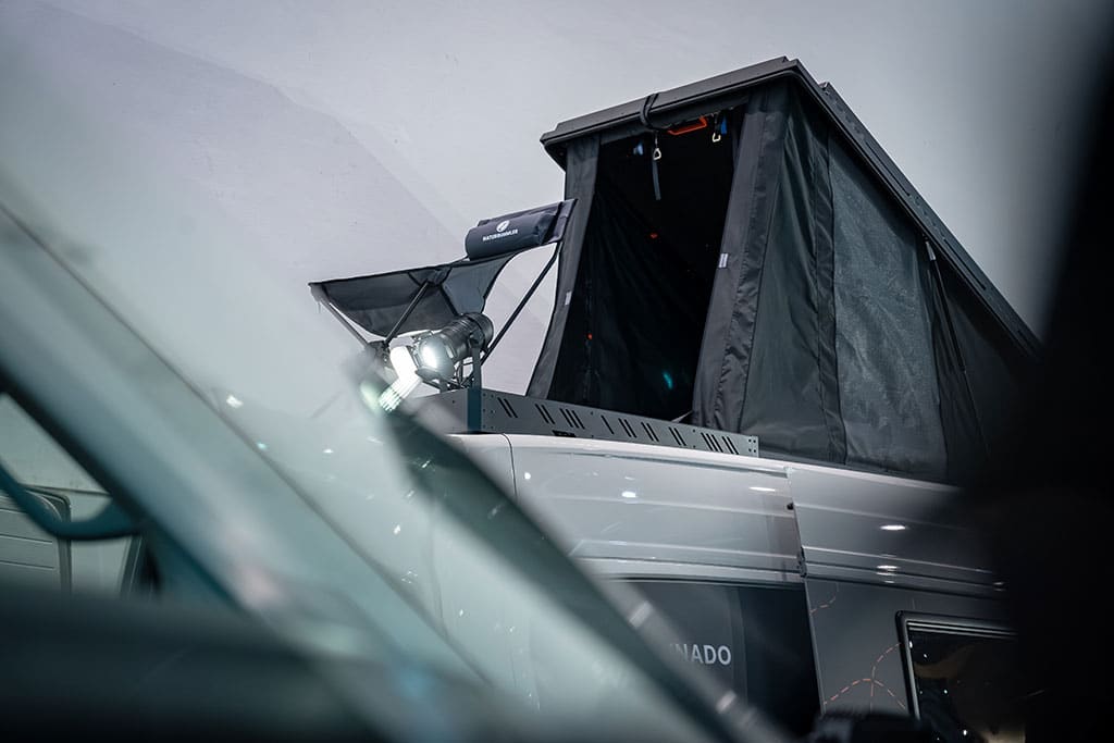 Der Vannado Altiplano sorgte für Aufsehen auf dem Caravan Salon – und das nicht ohne Grund. Der individuelle Camper basiert auf dem robusten MAN TGE und wird in Polen in kleiner Serie handgefertigt. Jedes Modell ist ein echtes Unikat, das nach den Wünschen der Kunden angefertigt wird. Ein Highlight des Fahrzeugs: eine Dachterrasse, die sowohl begehbar ist, als auch zusätzliches Gepäck aufnehmen kann. Dadurch kann das Dach des Campers als Freisitz mit Panoramablick genutzt werden.