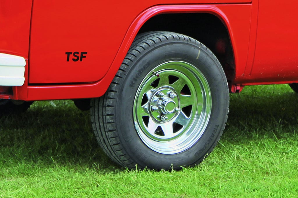 Ein Prunkstück, das sich nicht nur unter den Bus-Freaks einen Namen gemacht hat, ist die sogenannte Käseloch-Felge. Der Hersteller – die 1960 zunächst als Importeur für Echtholz- Lenkräder gegründete Firma ATIWE, das übrigens für Manfred Heinz Auto Technik Industrie Wetzlar steht – begann bereits 1967 mit dem Verkauf von Leichtmetallfelgen in Deutschland. Zehn Jahre später wurde dann das neue, löchrige Aluminiumrad in den einschlägigen Fachzeitschriften als Neuheit für rund 170 DM das Stück angepriesen.