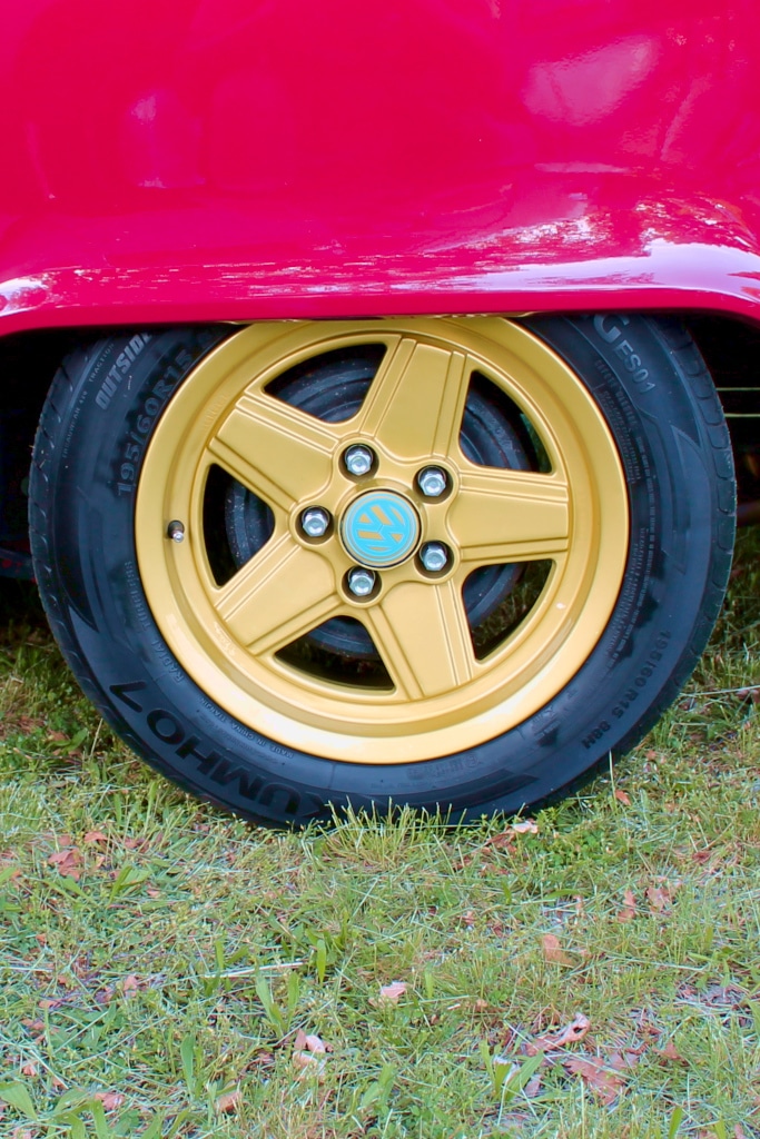 Was haben Rennautos und Bullis gemein? Beiden stehen feine Kreuzspeichen von BBS ganz hervorragend, zumal in Gold/poliert.