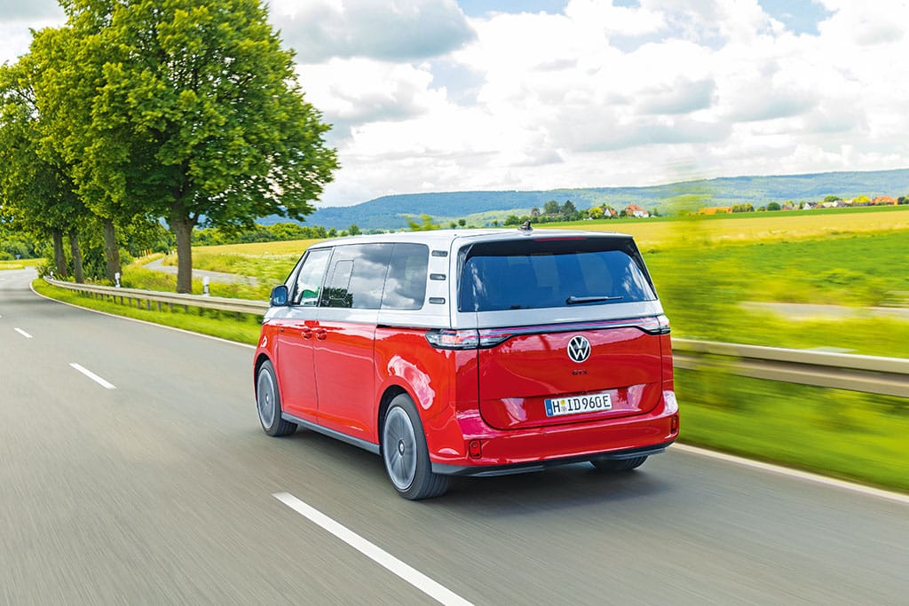 Ein sportliches Gefühl vermitteln auch die 340 PS bzw. 560 Nm, sogar mit Nachdruck. In 6,5 Sekunden erreicht der GTX Landstraßentempo, Schluss ist erst bei 180 km/h. Trotzdem bleibt unser Fazit, dass schon die 286 PS des Motors an der Hinterachse, bzw. der Basisversion ID. Buzz Pro, mehr als ausreichend wären. Auch in Sachen Traktion dürfte man mit dem Hecktriebler in aller Regel zurechtkommen.