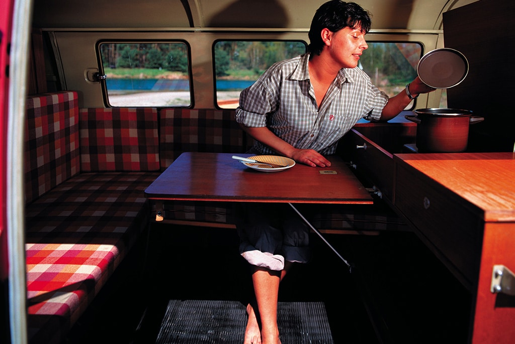 Eng mit dem VW Bulli verbunden ist Westfalia. Der Ausbauer lieferte bereits ab 1950 seine legendäre Camping-Box mit Campingtisch, Schrank überm Motorraum und Hängeregalen für die seitlichen Klapptüren. Die Camping-Box machte den T1 zum Womo auf Zeit. Erst ab 1961 gab es den echten, permanenten Campingbus – auf Wunsch mit Aufstelldach und Chemie-Toilette.