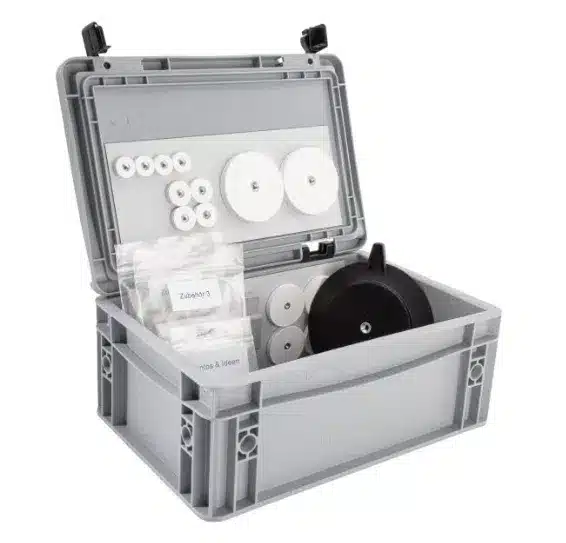 Mit dem flexiMAGS Magnet-Set haben Sie unterwegs immer alles fest im Griff – ob Leuchte, Außendusche oder Wäscheleine.Die 102-teilige Box enthält vielseitiges Zubehör für drinnen und draußen – und sorgt für Ordnung, ohne Spuren am Fahrzeug zu hinterlassen.Ein Muss für alle, die clever campen!