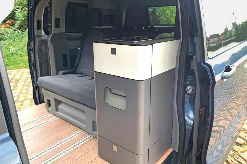 Es ist immer dasselbe: Erst ist die Skepsis groß und dann die Begeisterung. Die Rede ist von der zweiten Schiebetür am Campingbus, die den Wohnraum öffnet, einen Durchgang schafft, aber auch Stauraum kostet – so wie an unserem Citycamp von Dreamer.