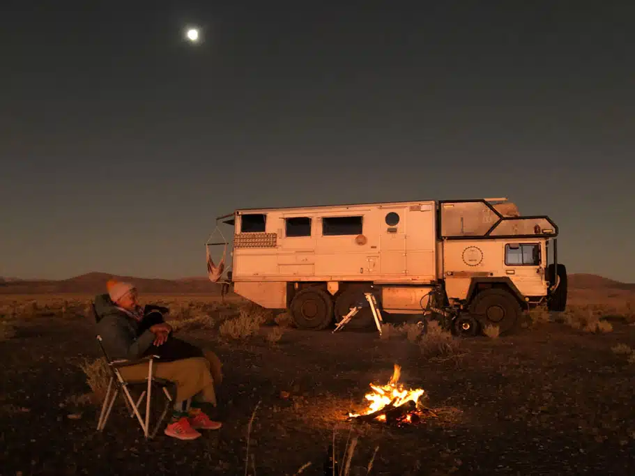 Seit 2020 leben Thorsten und seine Ehefrau Gesa mit ihrer marokkanischen Hündin Zaza in dem selbst ausgebauten 19-Tonnen-LKW. Von der Sahara über den Atlantik zum Pazifik und weiter, von Wüstenpisten über steile Bergpisten bis zu Küstenwegen – sie reisen gern fernab befestigter Straßen, immer mit Neugier, Entdeckergeist und dem festen Willen, das Leben draußen zu leben.