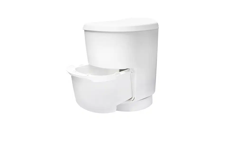 Funktionsweise: Flüssige und feste Stoffe werden ebenso wie Klopapier in einer Kassette unterhalb der Toilette gesammelt und mithilfe von Chemie-Zusätzen zersetzt. Zum Entleeren lässt sich die Kassette durch eine Außenklappe entnehmen und dank Rollen und ausziehbarem Griff zur nächsten Entsorgungsstation ziehen. Preis: je nach Modell zwischen rund 700 und 1.100 Euro.