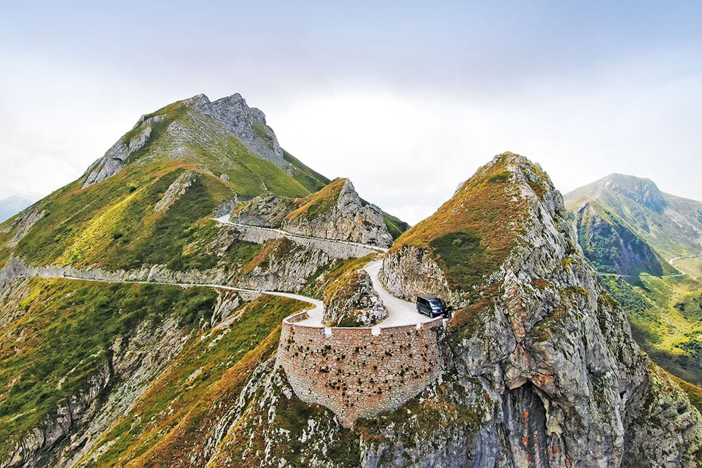 Im Vergleich zu den anderen Ruinen wirken die beiden riesig. Vor allem mit der Drohne werden die Ausmaße der Festungsanlagen inmitten der spektakulären Berglandschaft deutlich. Als Fahrer muss man sich durchgehend auf die schmale Fahrspur konzentrieren. Oft bleiben zur Felswand auf der einen und dem mehrere hundert Meter tiefen Abgrund auf der anderen Seite nur wenige Zentimeter.