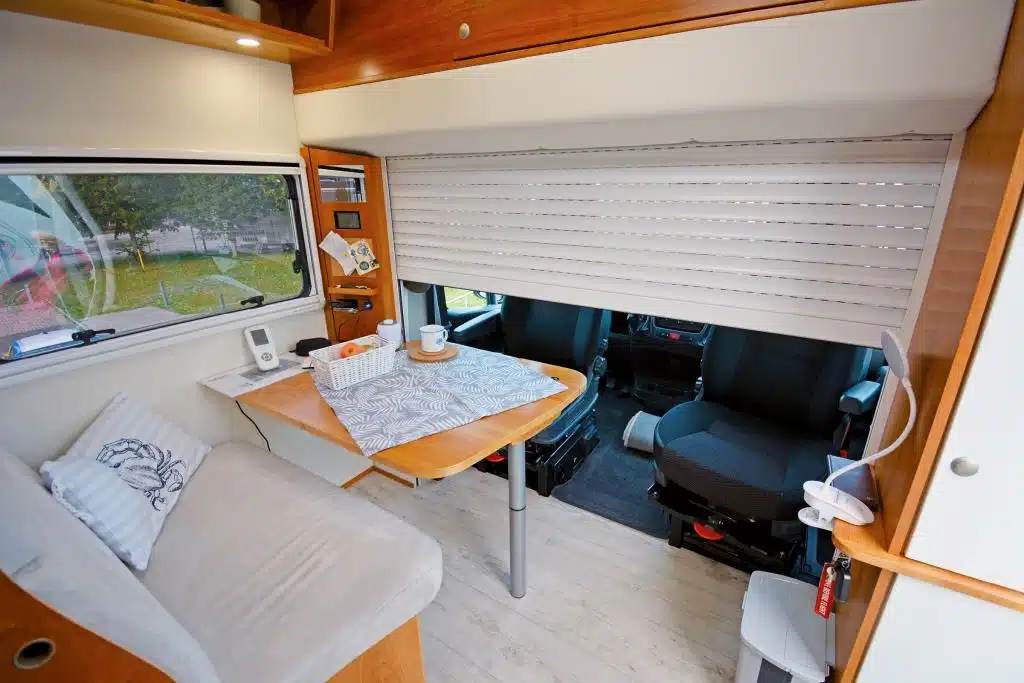 Wohnmobil-Kabine Marke Eigenbau: Der Teilintegrierte auf Peugeot ist nicht das erste Projekt von Wilhelm und Christa Klinke – der ausgebaute Jumper wurde irgendwann zu eng. Der Plan, ein komplettes Wohnmobil zu bauen, entstand im Jahr 2020. Doch wie baut man zu zweit in einer Doppelgarage eine ganze Wohnmobil-Kabine mit großem Bad im Heck? Ganz einfach: in drei Teilen. Der gesamte Ausbau ist durchdacht und mit liebevollen Details umgesetzt. Die Einzelbetten lassen sich im Gang mit einer Brücke verbinden. Wer selbst ein Wohnmobil samt Kabine bauen möchte: Die Anleitung gibt’s auf juboduselbstausbau.de.