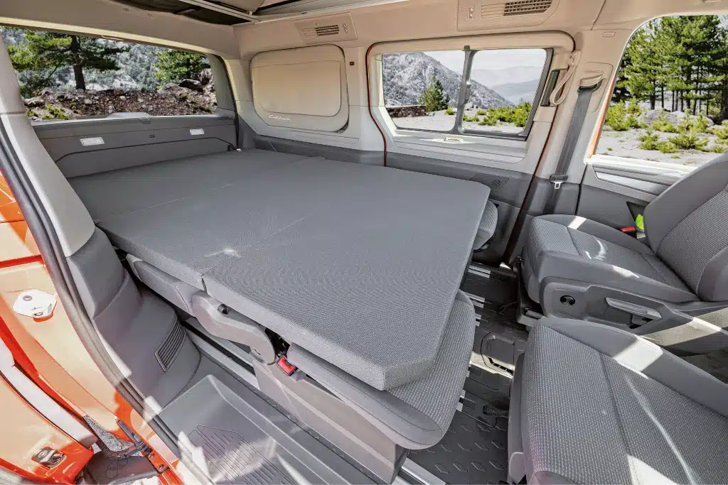 Dass die neue California-Basis eine zweite Schiebetür zwingend vorgibt, ist beim Beach nicht weiter tragisch – es passt vielmehr perfekt ins Konzept. Seit 20 Jahren ist der Beach als Crossover aus Multivan und California ein echter Bestseller. Auch hier gehören das Aufstelldach, die Klappbank und Drehkonsolen schon lange zum Standard. VW geht sogar noch deutlich weiter in Richtung Camping, etwa mit serienmäßigen Verdunkelungsrollos, einer echten Beleuchtung, Campingmöbeln und zuletzt auch mit einer Miniküche. Damit kann der California Beach – anders als der Marco Polo Horizon – auch als Wohnmobil zugelassen werden.