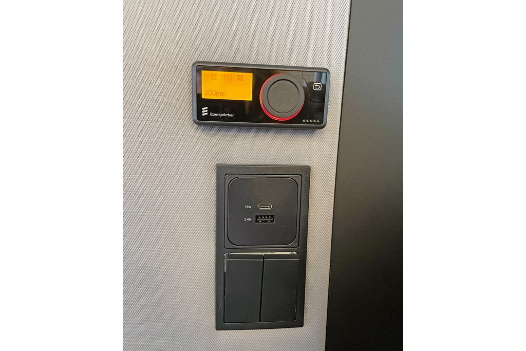 Im Yucon werkelt ab Werk eine Eberspächer-Dieselstandheizung mit 2,2 Kilowatt Heizleistung – das ist absolut ausreichend. Anfangs ist das Gerät zwar meist deutlich zu hören, doch wenn die Heizung nach einigen Minuten in den Teillastbetrieb (0,85 kW) runterschaltet, wird es viel besser. Die Höhenanpassung übernimmt das Gerät bis 3.000 Meter automatisch. Das Bedienpanel ist simpel und entsprechend verständlich, und an der C-Säule ist es gut erreichbar angebracht.