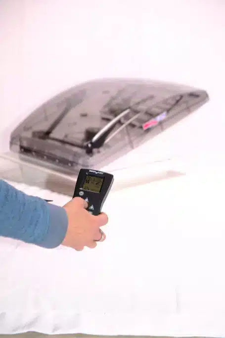 Tipp: Wer gezielt ein Fenster dort im Camper öffnet, wo er sich gerade aufhält, andere aber geschlossen hält, spürt den Frischluftstrom besonders deutlich. Zurück zur eingangs gestellter Frage: Welche Ventilationsdachhaube macht den besten Job? So viel vorneweg: den Kauftipp der Redaktion findest Du in diesem Vergleich. Das Pflichtprogramm „Luftbewegung“ absolvieren alle Geräte, auch die aus 2022 mit Anstand. Auf höchster Lüfterstufe „OUT“ saugen selbst die im Gesamtergebnis durchschnittlich abschneidenden Geräte innerhalb von ein, zwei Minuten das komplette Raumvolumen an Heißluft aus dem Fahrzeug.